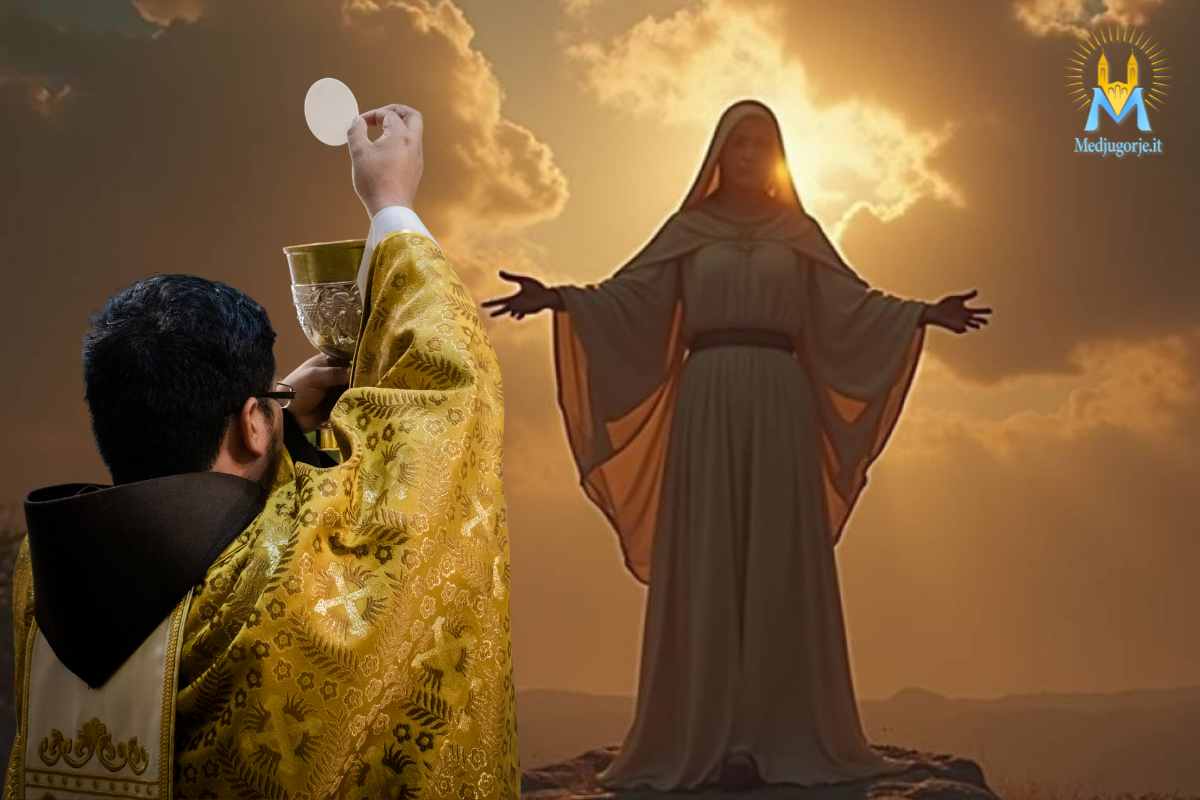 “La Santa Messa sia il centro della vostra vita spirituale”: qui la Vergine ci richiama a ciò che la Chiesa ha sempre insegnato: l’Eucaristia è “fonte e culmine della vita cristiana” (cf. Lumen Gentium 11). Nella Messa incontriamo Cristo vivo, ci uniamo al suo sacrificio, riceviamo la forza per amare e servire. È il vertice della preghiera, il cuore della fede. La benedizione speciale data dalla Regina della Pace, anche agli oggetti sacri, è segno della sua sollecitudine materna e della potenza della grazia che Dio le concede per aiutarci nel nostro cammino.