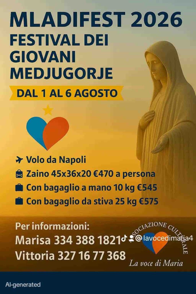 LA VOCE DI MARIA: MEDJUGORJE 1-6 AGOSTO 2026 AEREO DA NAPOLI. MLADIFEST