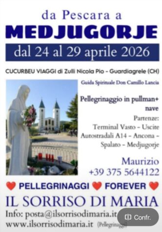 Medjugorje dal 24 aprile al 29 aprile 2026. Bus + nave Ancona-Spalato