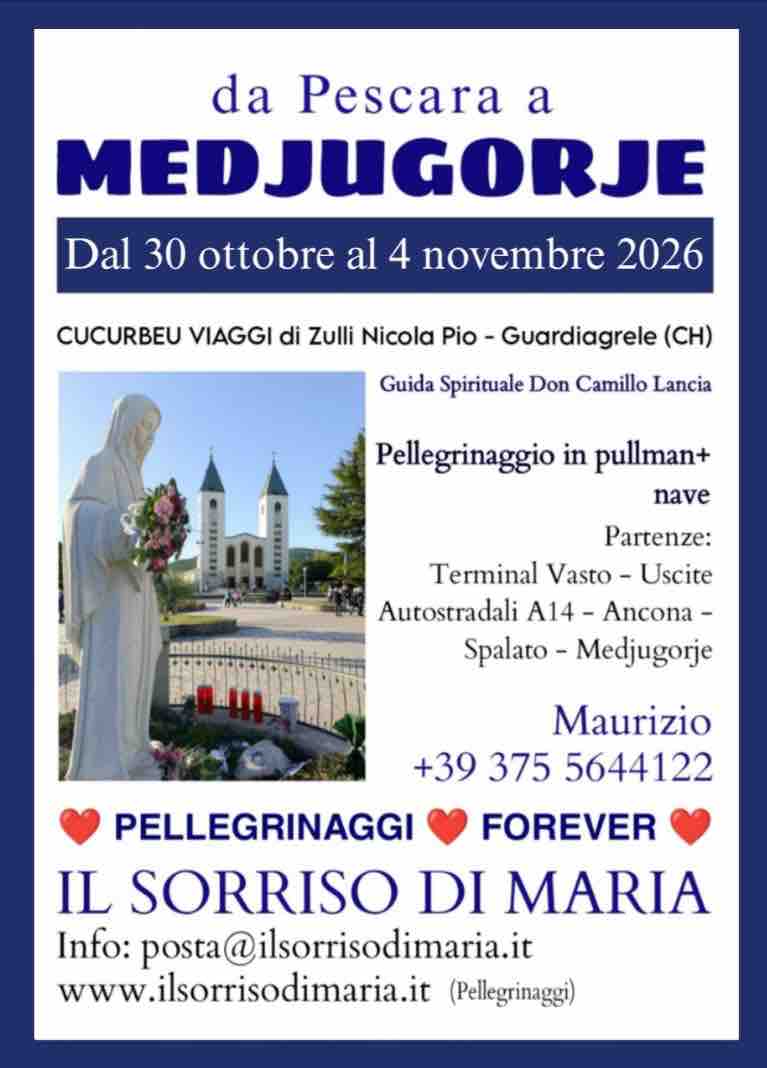 Medjugorje dal 30 ottobre al 4 novembre 2026. Bus + nave Ancona-Spalato