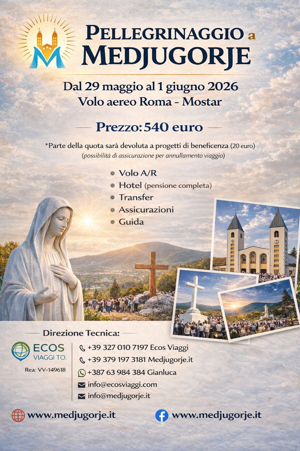 Medjugorje dal 29 maggio al 1 giugno 2026. Volo Roma-Mostar A/R