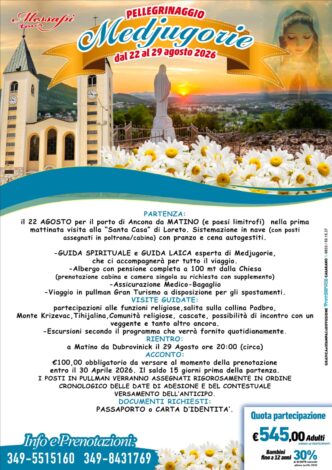 Medjugorje dal 22 aprile al 29 agosto 2026. Bus + nave Ancona-Spalato