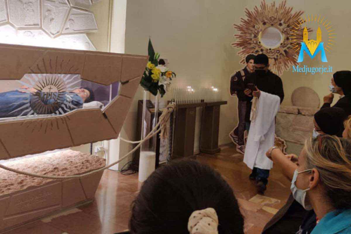 Pellegrini in visita alla tomba di San Carlo Acutis (www.medjugorje.it)