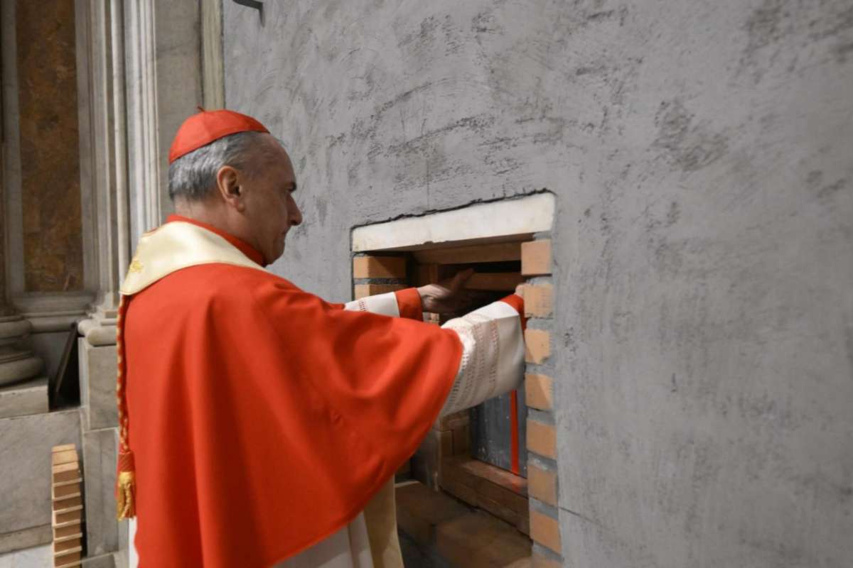 Le altre 3 porte sante delle Basiliche Papali hanno visto la muratura, nella parte interna, della loro porta santa, nei giorni scorsi, mentre per al porta santa più importante, quella della Basilica di San Pietro, si è provveduto a farlo proprio venerdì scorso. Il rito si è svolto alla presenza dell’arciprete della basilica, monsignor Gambetti che, alle ore 19.30, ha presieduto in forma privata il rito di muratura della Porta Santa della Basilica alla presenza del maestro delle celebrazioni liturgiche pontificie, l’arcivescovo Ravelli.