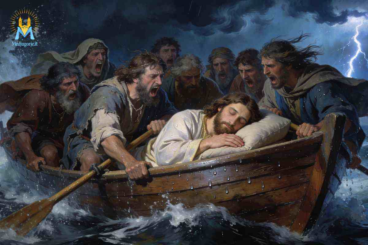 Il particolare più sconcertante è che Gesù dorme. I discepoli interpretano questo silenzio come disinteresse: «Non t’importa che siamo perduti?» È la stessa domanda che attraversa la storia dell’uomo credente. Tuttavia, il sonno di Gesù non è indifferenza, ma fiducia totale nel Padre. Quando si desta, la sua parola domina il vento e il mare: «Taci, calmati!» È il linguaggio stesso di Dio Creatore, che pone ordine sul caos (cfr. Gen 1,2).